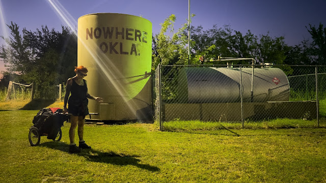 Nous voici donc ce petit matin caniculaire d’août 2023, sous un vieux réverbère, à côté d’un magasin d’appâts de pêche, la supérette de Nowhere, Oklahoma.